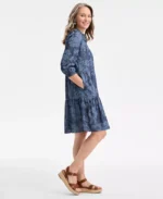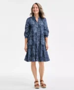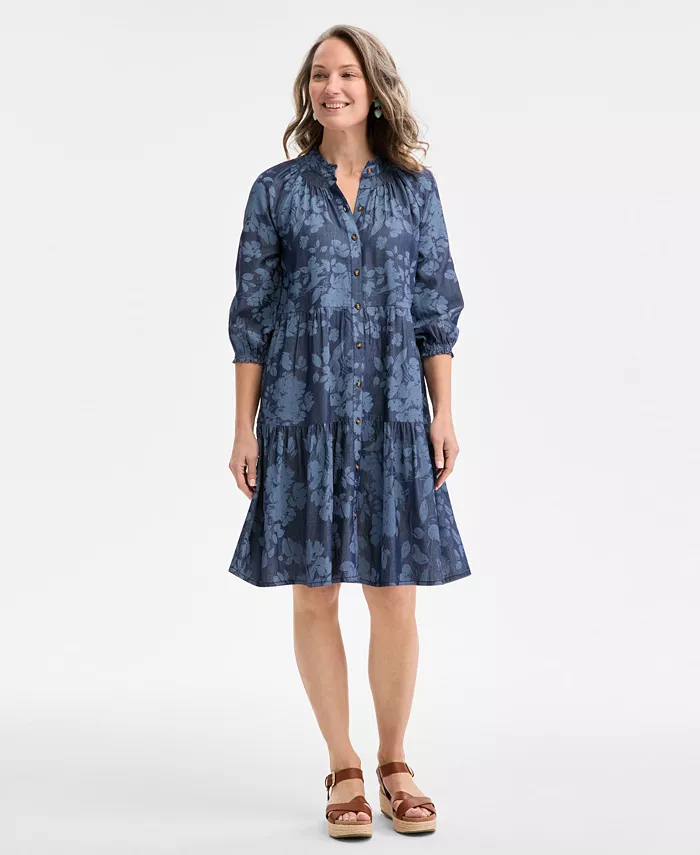 Women’s Floral Chambray 3/4-Sleeve Tiered Dress, Exclusively at Macy’s