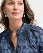 - Ruffled band collar with smocking