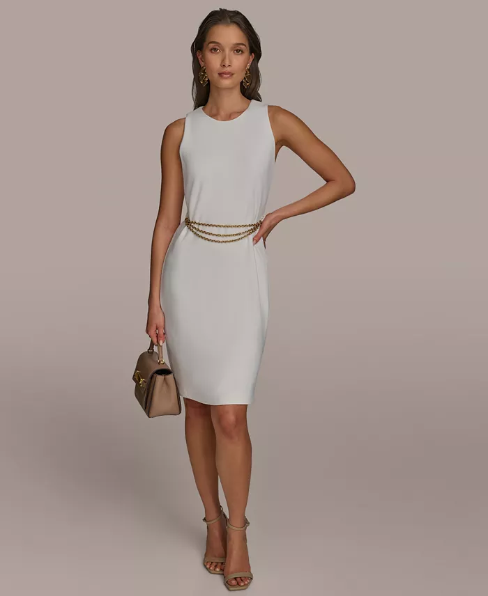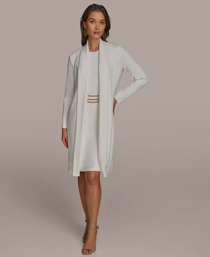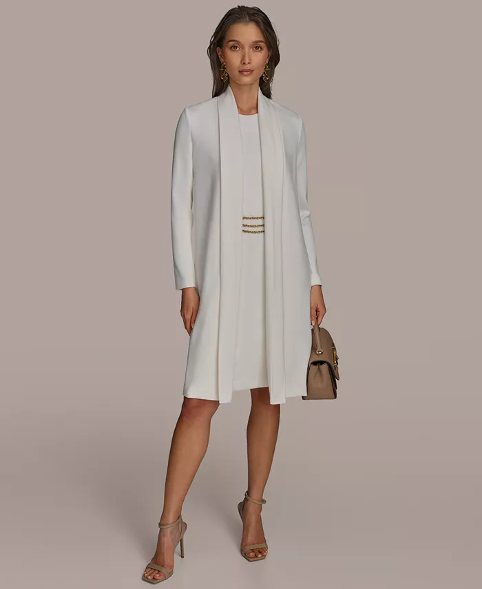 Women’s Shawl-Collar Chain Trim Jacket & Dress Set